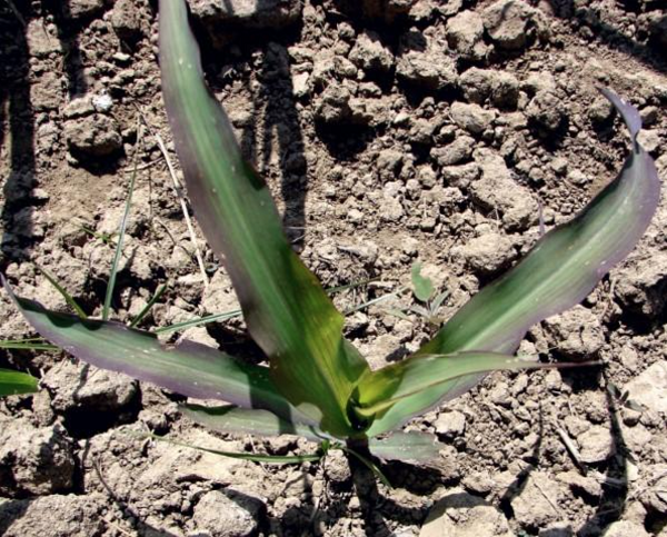Dacă fosforul nu se găsește în cantități suficiente porumbul va prezenta simptome de deficiență în special în primele faze de vegetație(vezi poza). Aplicarea și încorporarea în sol a îngrășămintelor de tip NPK și NP înainte de semănat asigură cantitatea de fosfor necesară în apropierea rădăcinilor.