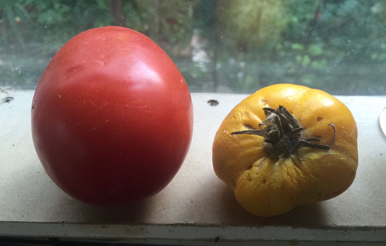 „Povestea acestei poze care a fost realizata anul trecut: Rosia galbena a fost culeasa din gradina mea si a rezistat pe pervazul geamului aproape o saptamana, iar rosia de culoare rosie a fost cumparata din hipermarket si a rezista Doamnelor si Domnilor, cat credeti, 2 luni si jumatate pe pervazul geamului in interior in bucatarie”, a scris un cultivator.