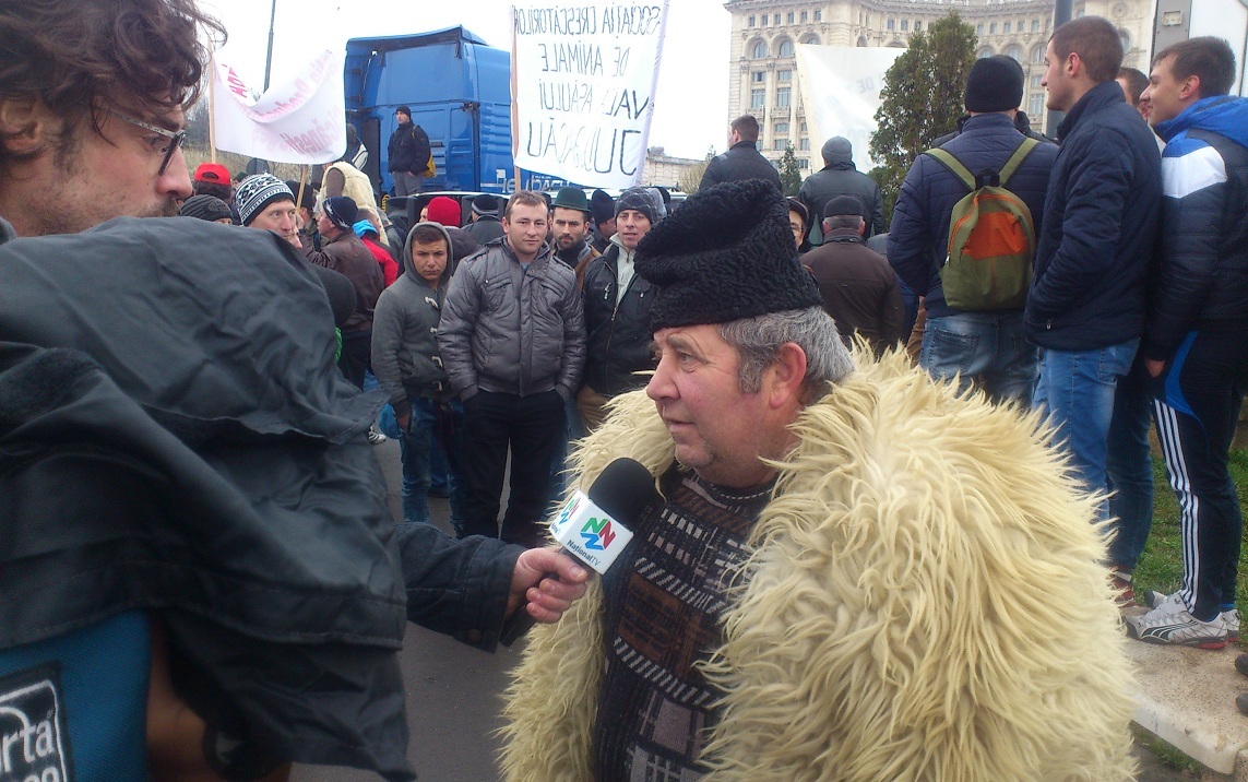 Crescatorii de animale au venit la protest cu talangi, fluiere si chiar vuvuzele. Pe pancartele lor se putea citi mesaje precum: „Vrem bani pe munca noastra”, „Jos mafia din agricultura”, „Deputati si senatori nu uitati de agricultori”, „Vrem legea cooperativei!”, „Incurajati producatorii romani!”.