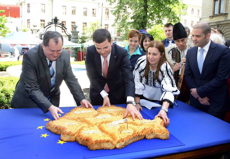 Evenimentul dedicat sărbătoririi Uniunii Europene a fost intitulat „România – ca o pâine”, deoarece „pâinea are o semnificaţie aparte pentru români, simbolizând legătura omului cu munca”, după cum a explicat șeful de la Agricultură. Astfel, a fost recreată harta regiunilor din România prin intermediul a opt pâini mai mici, împletite, care au fost prezentate de copii îmbrăcaţi în port popular.