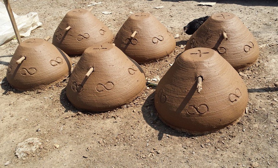 „Confectionarea testului se face dupa un procedeu traditional, un fel de ritual. In prima faza avem necoie de acea argila rosie care se amesteca cu balega de cal. Aceasta are proprietatea de a lega pamantul, pentru a nu crapa testul. Se ameteca cantitati egale din aceste materii prime, se uda cu apa, se lasa la inmuiat in perioada noptii. Ziua urmatoare se respecta procedeul de amestecare traditional care inseamna calcat cu piciorul de 9 ori. Dupa care acel amestec este modelat cu mana pe matrite facute de noi din ciment. Asta deoarece ne dorim sa avem produse cat se poate de standardizate. Se usuca doar la soare, tim de 2 saptamani, apoi se pun invers, adica cu gura in sus pentru alte doua saptamani”, explica George Dumitru.