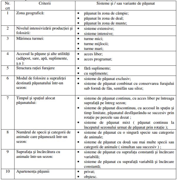 Principalele criterii de clasificare ale sistemelor de pasunat constau in: